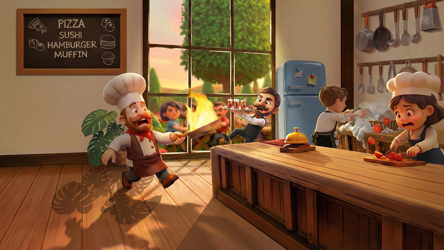 • Or team up with friends in Online Multiplayer: one player plays as Chef, and the other as Waiter (each role should be played by at least one player), coordinating to prep, cook, plate, and serve.