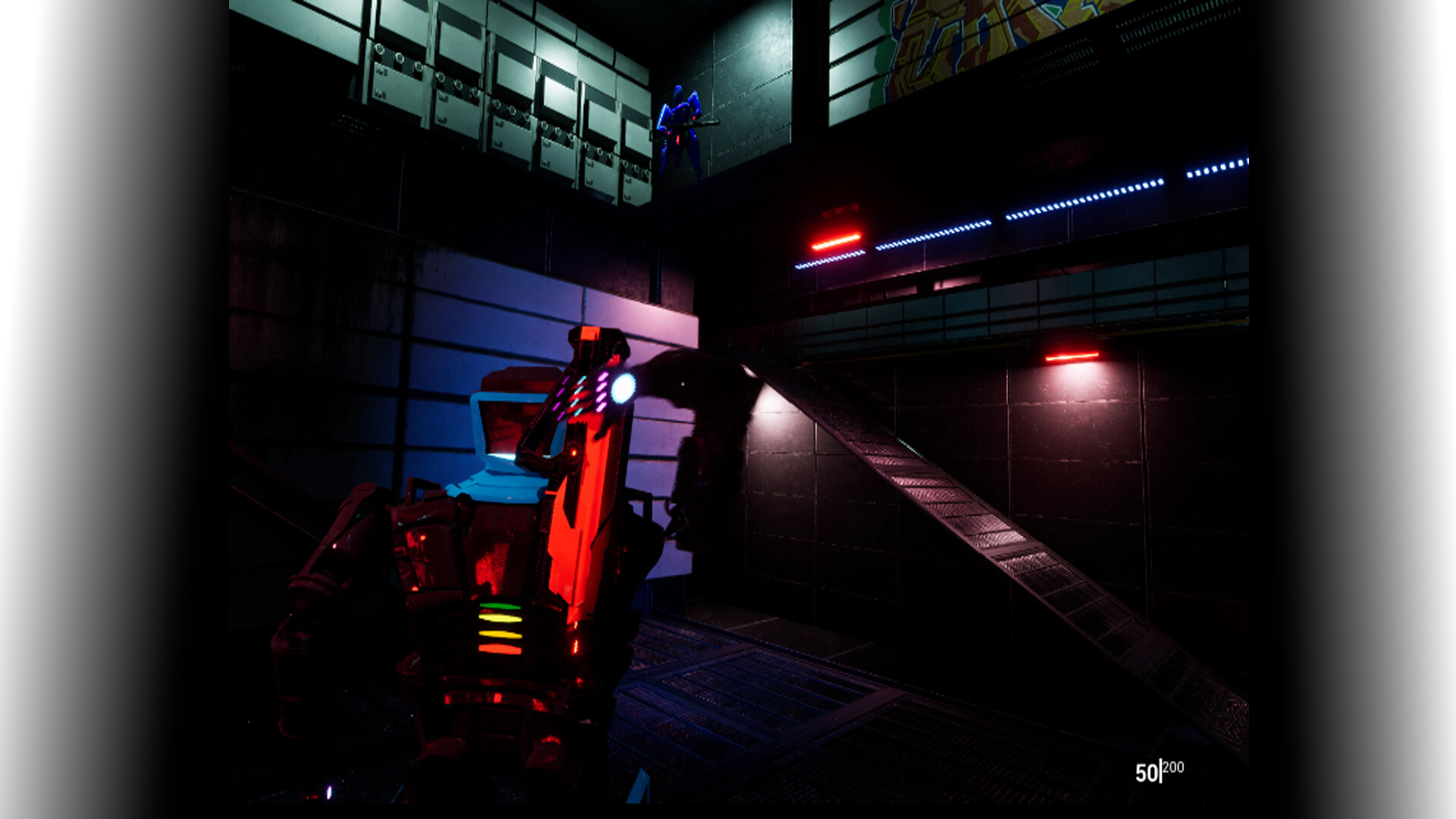 This demo features one level of the game.  The demo features advanced game mechanics such as recharging the Android inside a chamber after taking several hits from the enemy.