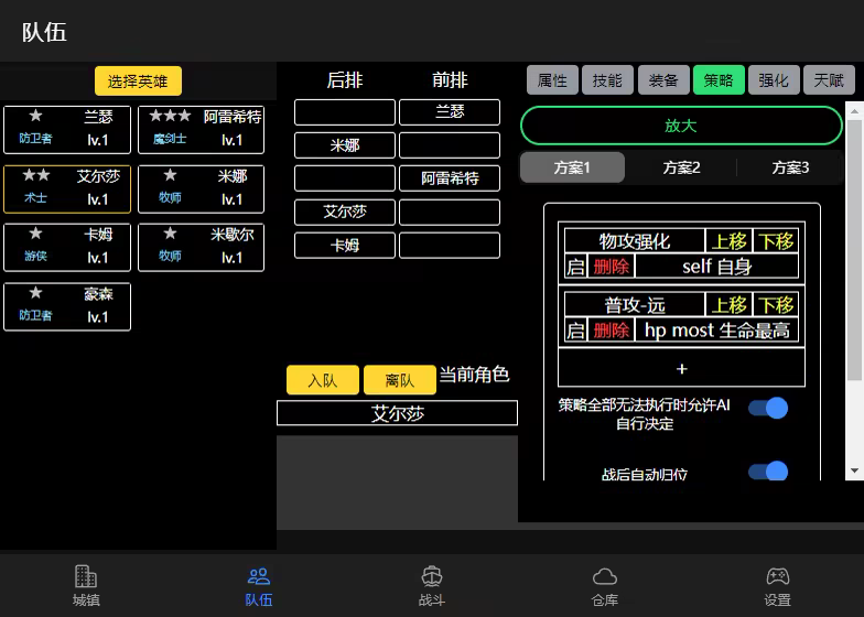 《放置冒险团》是一款硬核的文字放置游戏,玩家可以给每位角色编写“AI”,使角色能“聪明”地应对各种危急情况。
