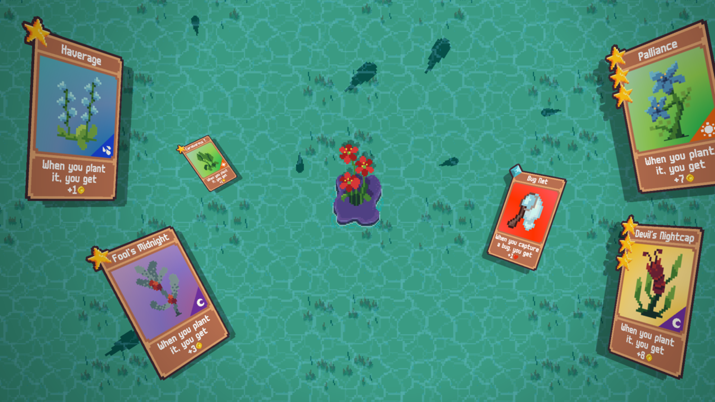 SeedGod is a roguelike deck builder inspired by the 1990 game Minesweeper. In this game, you must strategically plant crops in a field infested with bugs, and not planting is not an option.