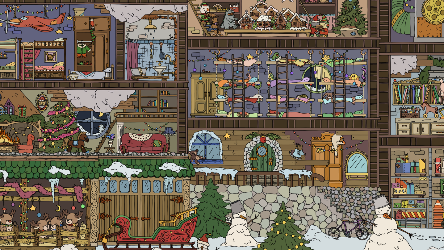 So, what are you waiting for? Hurry on a search for 150 cleverly hidden items throughout the area so that the black and white picture comes to life and no one is left without a gift!