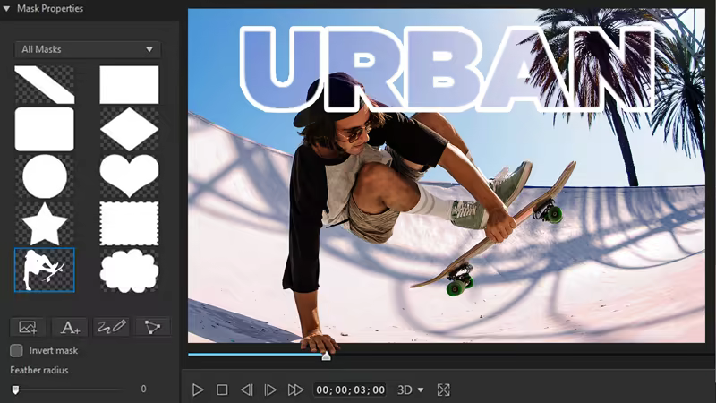 Create custom masks with an intuitive designer to composite and design unique titles, images, graphics, or videos.
