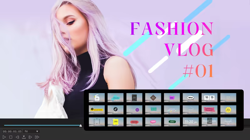Add titles with unique animated templates that include motion graphics and sound effects.