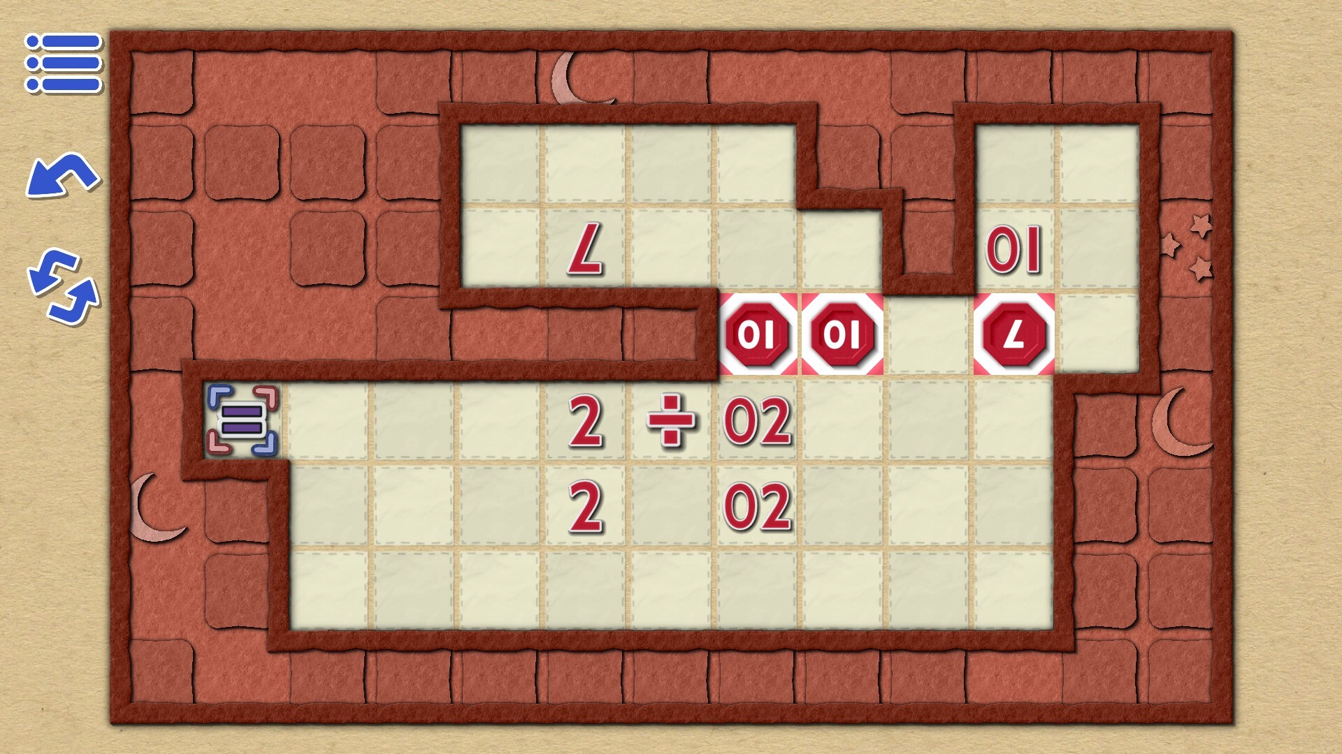 • Combination of Sokoban and arithmetic mechanics. This is an idea-based puzzle, not just simple math problems.