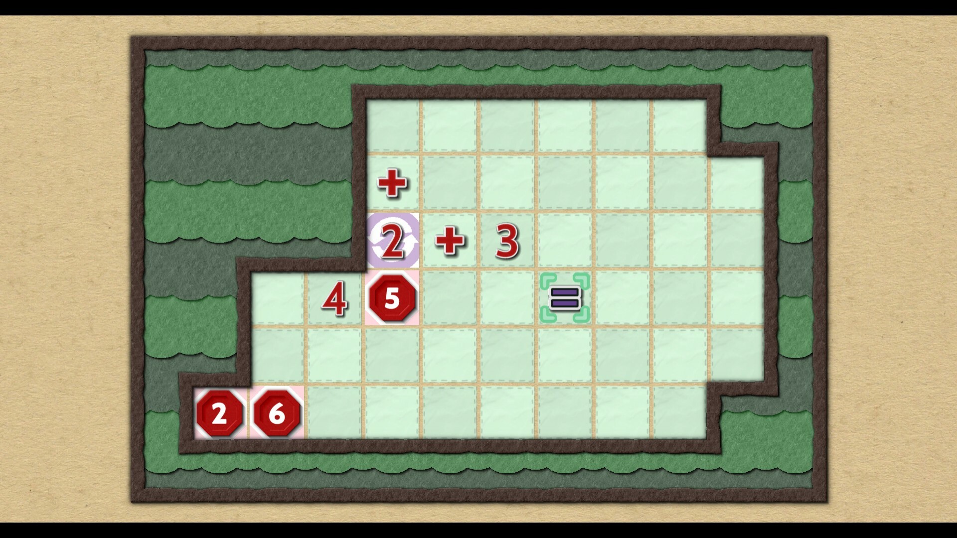 • Combination of Sokoban and arithmetic mechanics. This is an idea-based puzzle, not just simple math problems.
