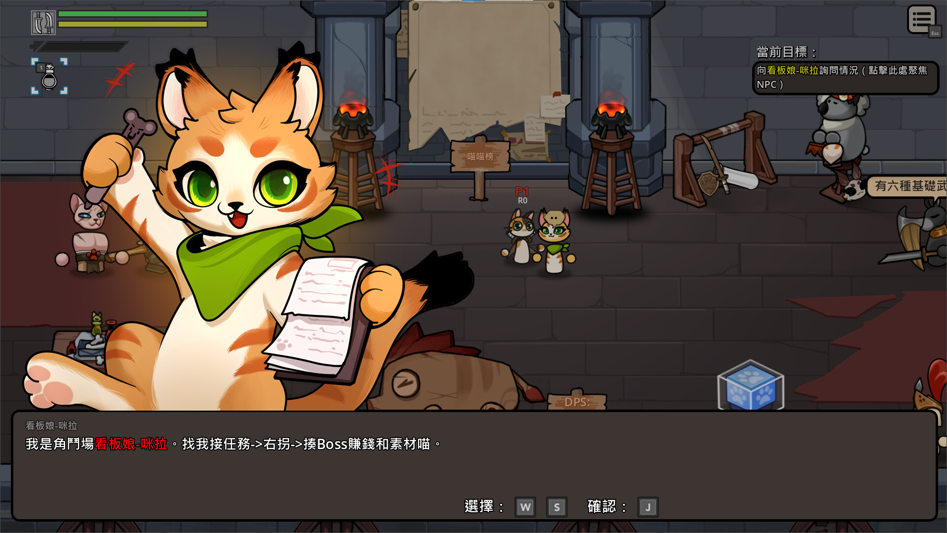遊戲中玩家將扮演一隻被解雇的獵喵,為了維持生計,找了一份角鬥士的工作,快拿起手中的武器,跟喵喵小夥伴們一起對抗角鬥場中的 BOSS 吧!