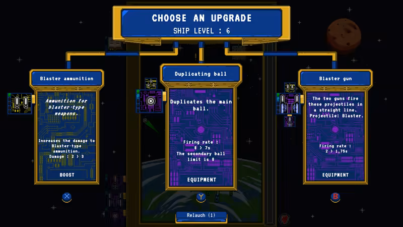 Boss System : Face off against 5 unique bosses in each run, randomly selected from a vast pool of varied and challenging bosses. Inspired by old-school brick-breakers, these bosses appear as complex stages where you must clear all the bricks in under a minute to advance—a true test of speed and precision !