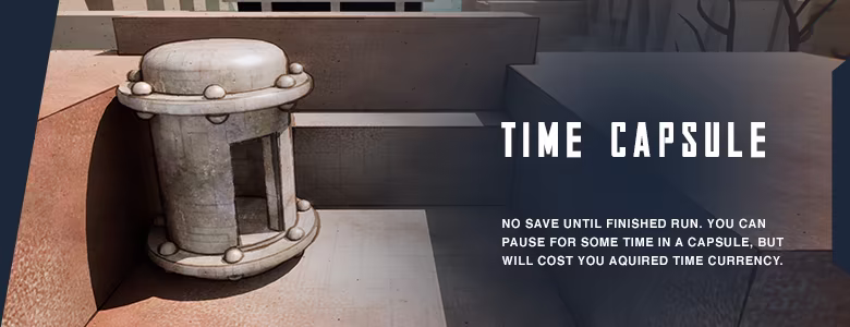 • Pausing, checkpoints, or manual saves are not possible - just like in real life. However, you can use a Time Capsule to take a break, at the cost of Time currency.