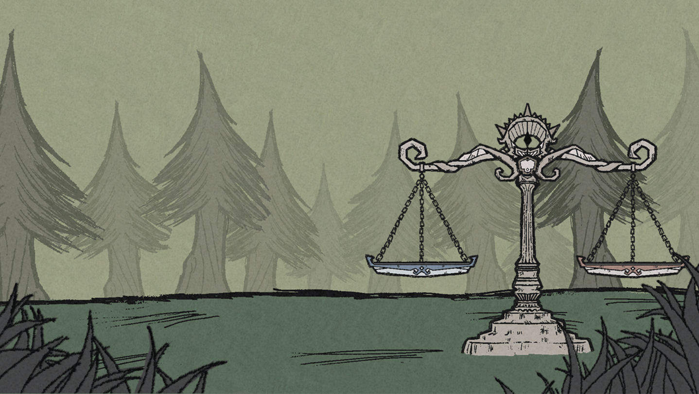 Assigning cards to the twins adds hope to each side of the scale. If the difference in their hope grows too large, the scale will tip, and its balance will begin to falter. When the scale tips completely and balance cannot be restored, its health decreases. Additionally, failing to accumulate enough hope to surpass the set despair value for each trial also reduces the scale’s health. If the scale’s health is fully depleted, the journey can no longer continue.