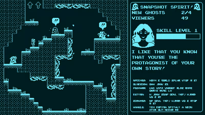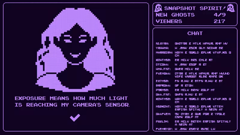 In Snapshot Spirit Live! you play as a jetpack-flying photographer named Katie as she hunts ghosts in this educational photography game with minimalist 1-bit-inspired graphics and a Game Boy-inspired soundtrack.