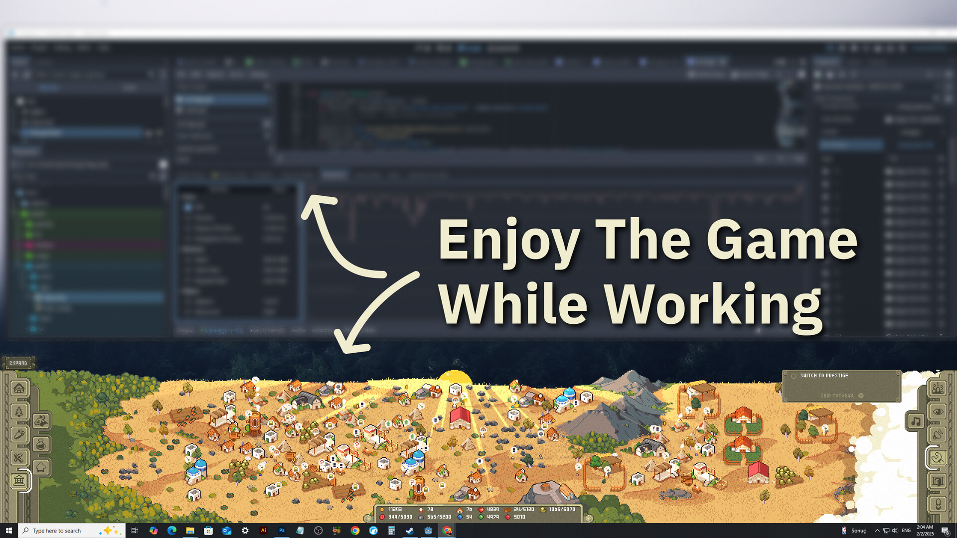 O Founders Legacy foi projetado para ficar discretamente na parte inferior da tela, permitindo que você assista a vídeos, navegue na Internet, escreva ou jogue outros jogos enquanto sua colônia prospera em segundo plano. Aumente o zoom para ver detalhes ou diminua o zoom para ter uma visão minimalista e sem distrações.