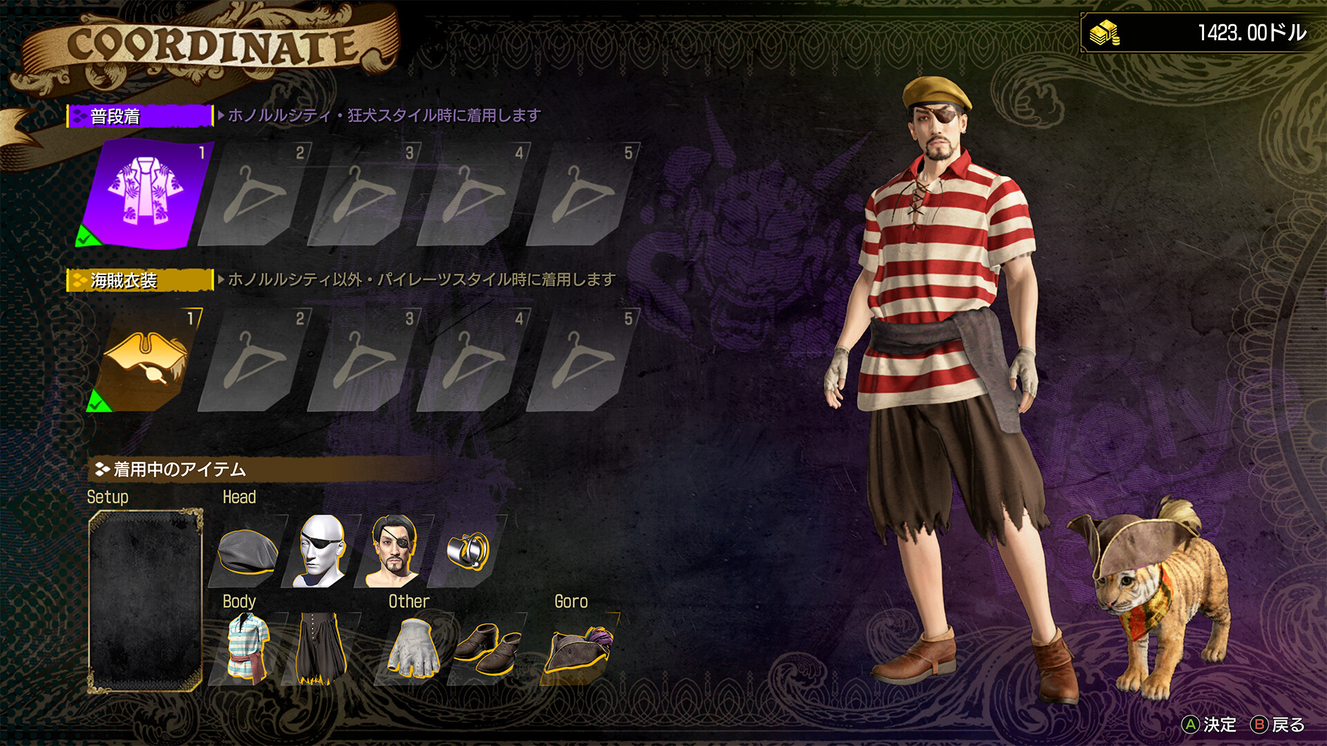 ・真島吾朗を好きな衣装に着せ替えられる、コーディネートの一部をお楽しみいただけます。