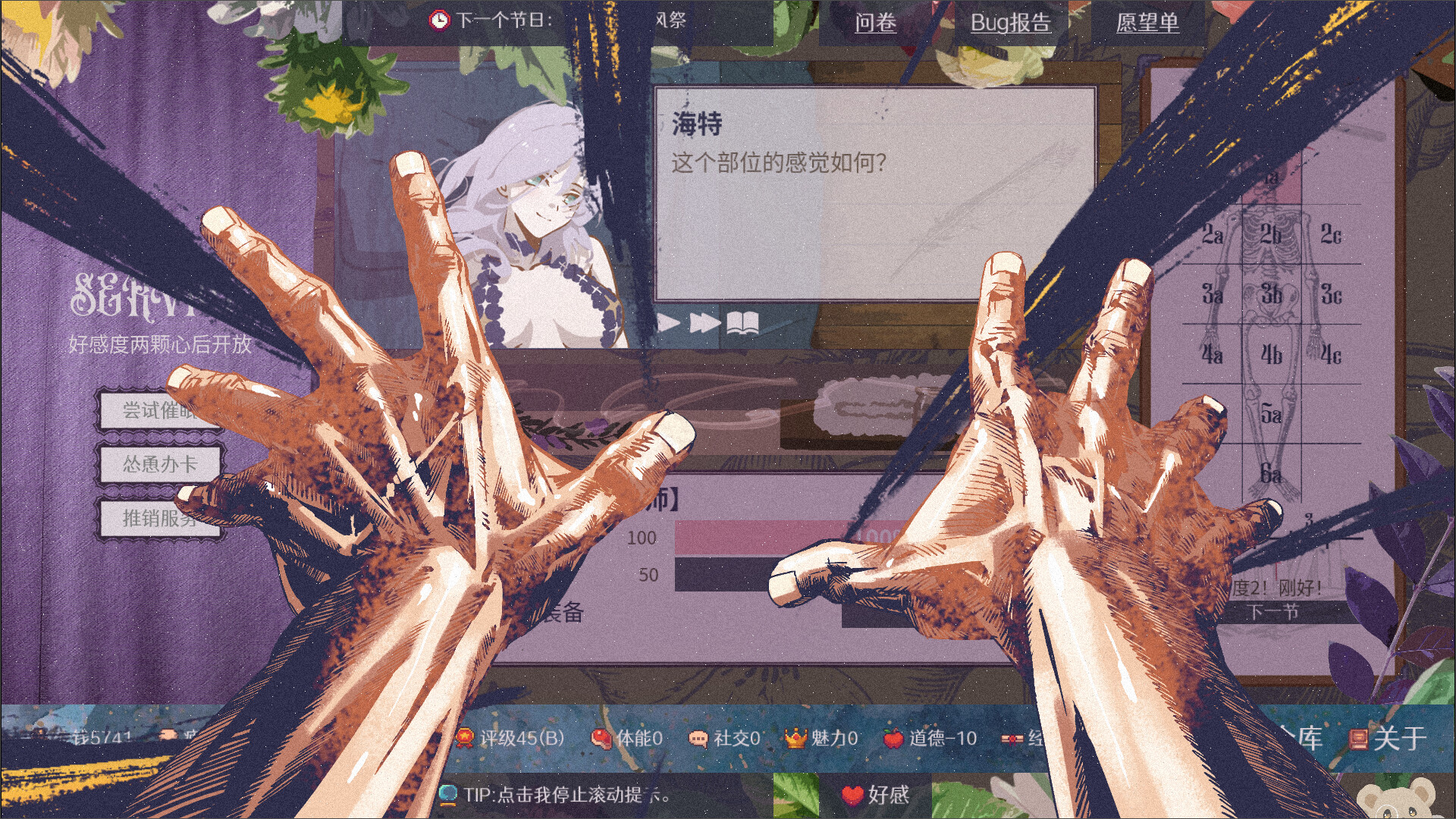 Choose the appropriate massage spot and pressure based on the magicians' reactions. Reckless touching of sensitive parts will cost you heavily.