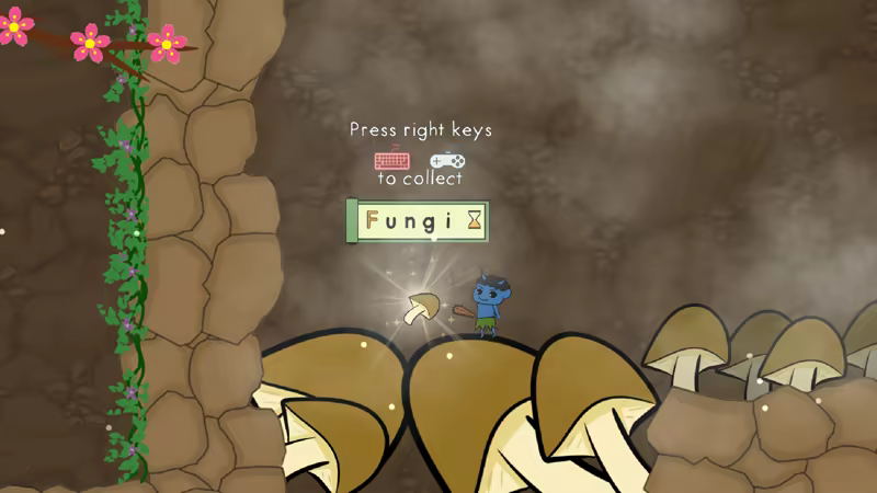 Type [🖮] or press the right buttons [🎮] to collect, interact and complete puzzles.