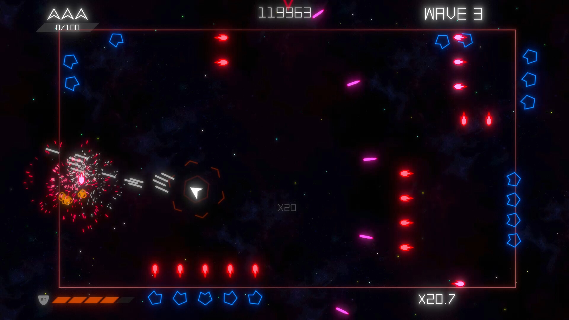 Shapefighter is an arcade-style, twin-stick shooter where you blast through 5 stages of pure shape onslaught. Shoot and dodge shapes that will swarm you in a ever-changing formations. Defeat all 5 bosses and take down the shape invasion!