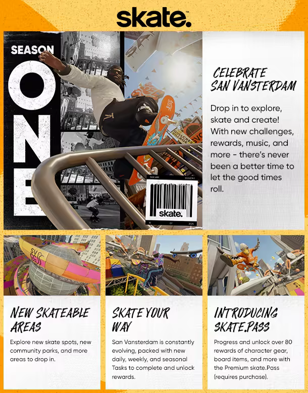 The San Van City Council will bring ongoing and seasonal updates featuring new gameplay experiences and ways to play together, fresh rewards and gear, new locations and skate spots across the city, in-game events, soundtrack refreshes and more.