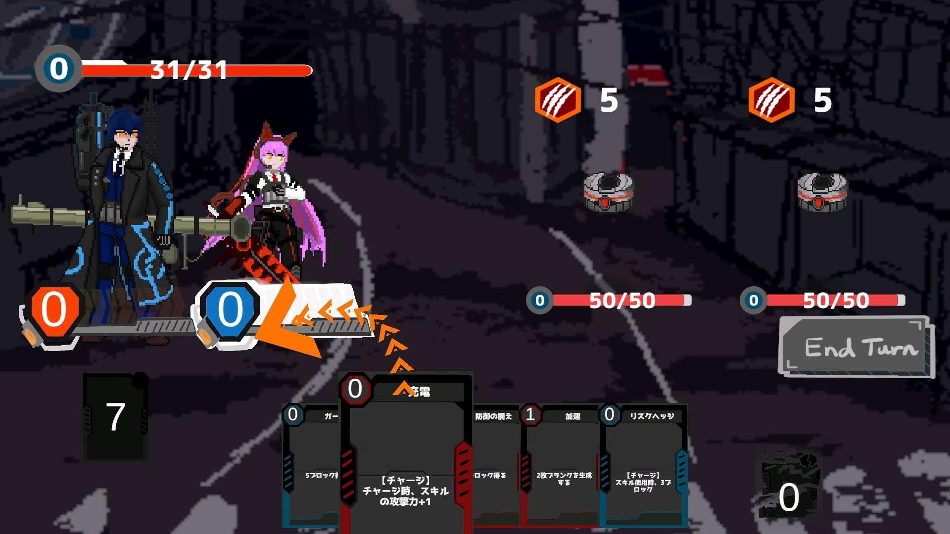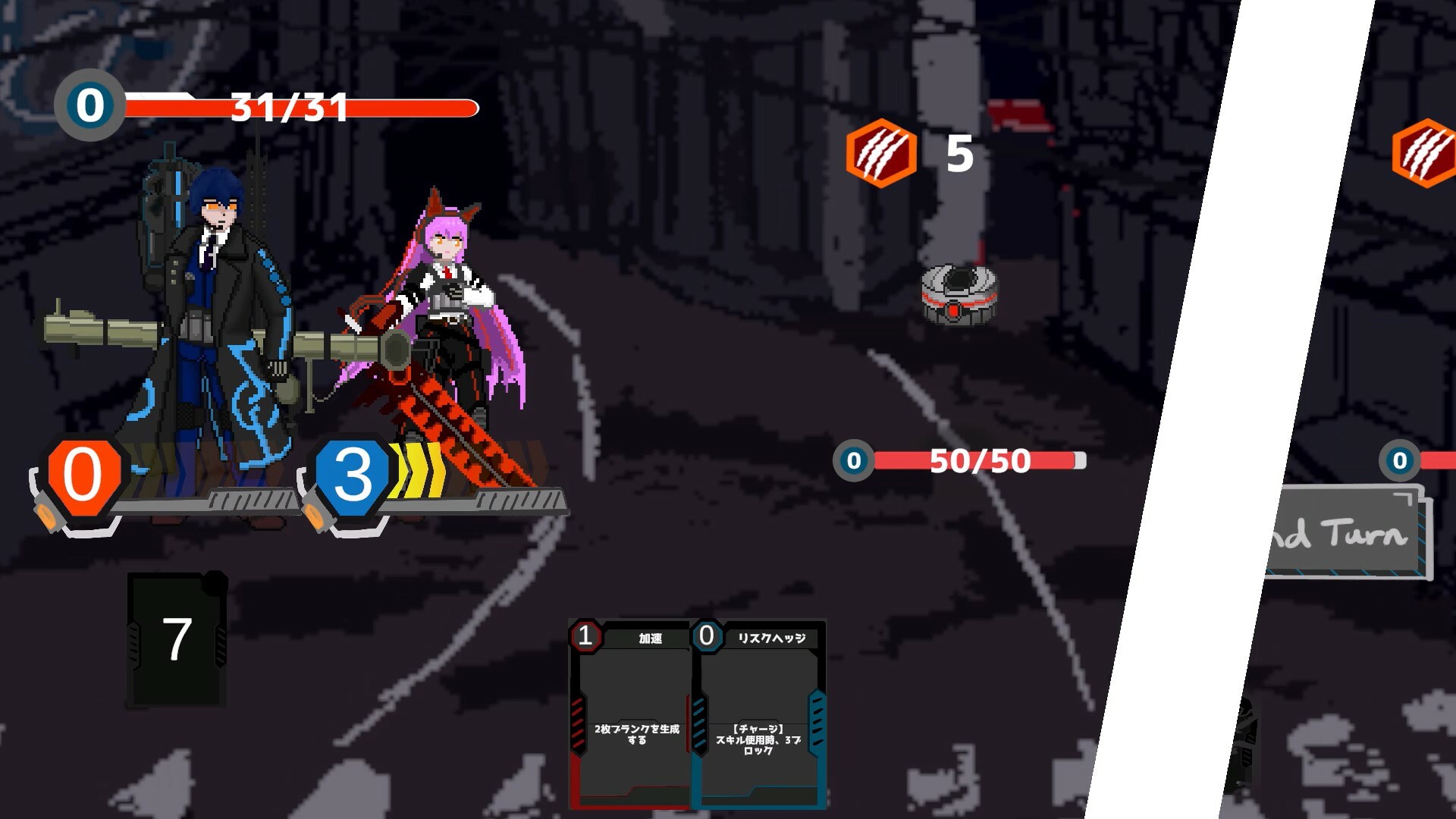 "Dual Souls Dualist" is a deckbuilding roguelike where you fight by combining two decks. Players team up as a pair of characters and take on an evil corporation that's plotting to take over the city. As you ascend through the corporation's skyscraper, the enemies become stronger. Power up your cards and skills to prepare for these challenging encounters.