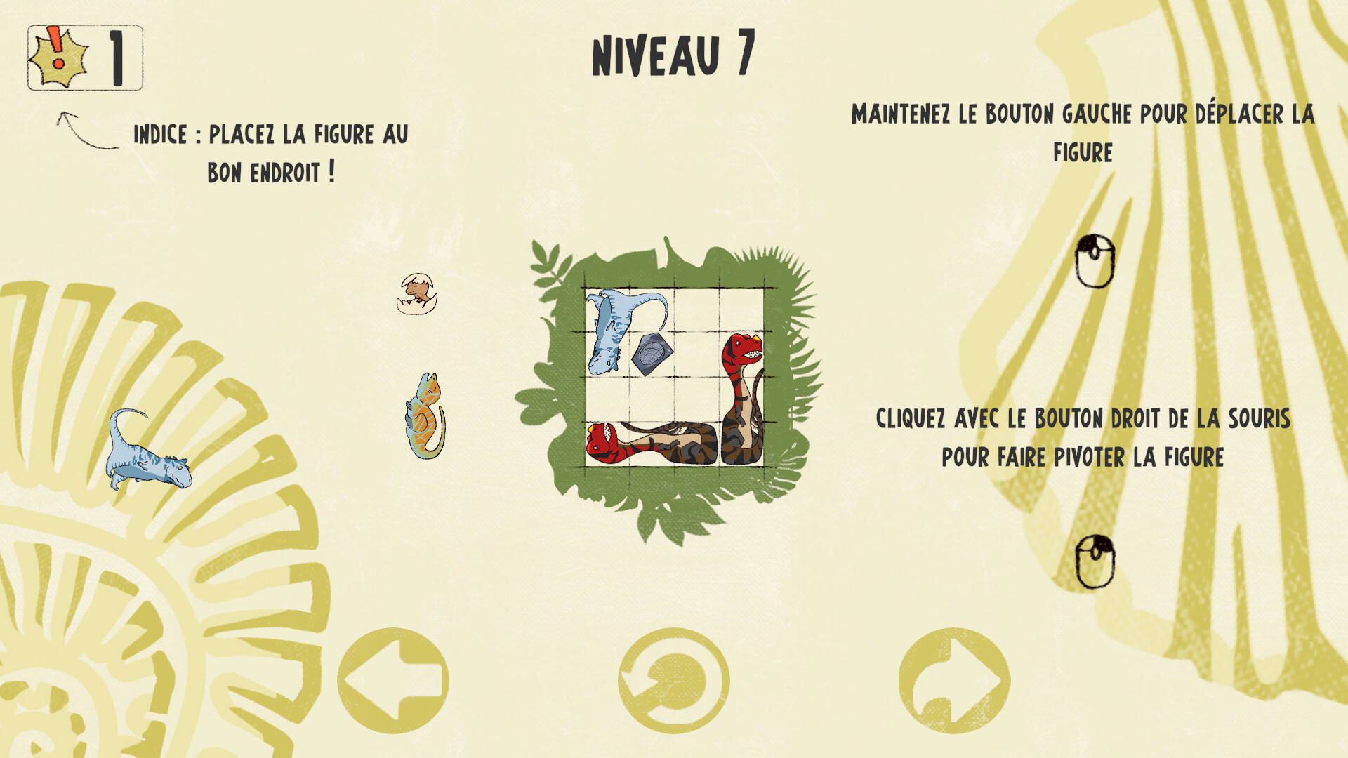 Contrôlez facilement les figurines de dinosaures avec les boutons gauche et droit de la souris. Déplacez et faites pivoter les dinosaures pour les adapter parfaitement à la grille.