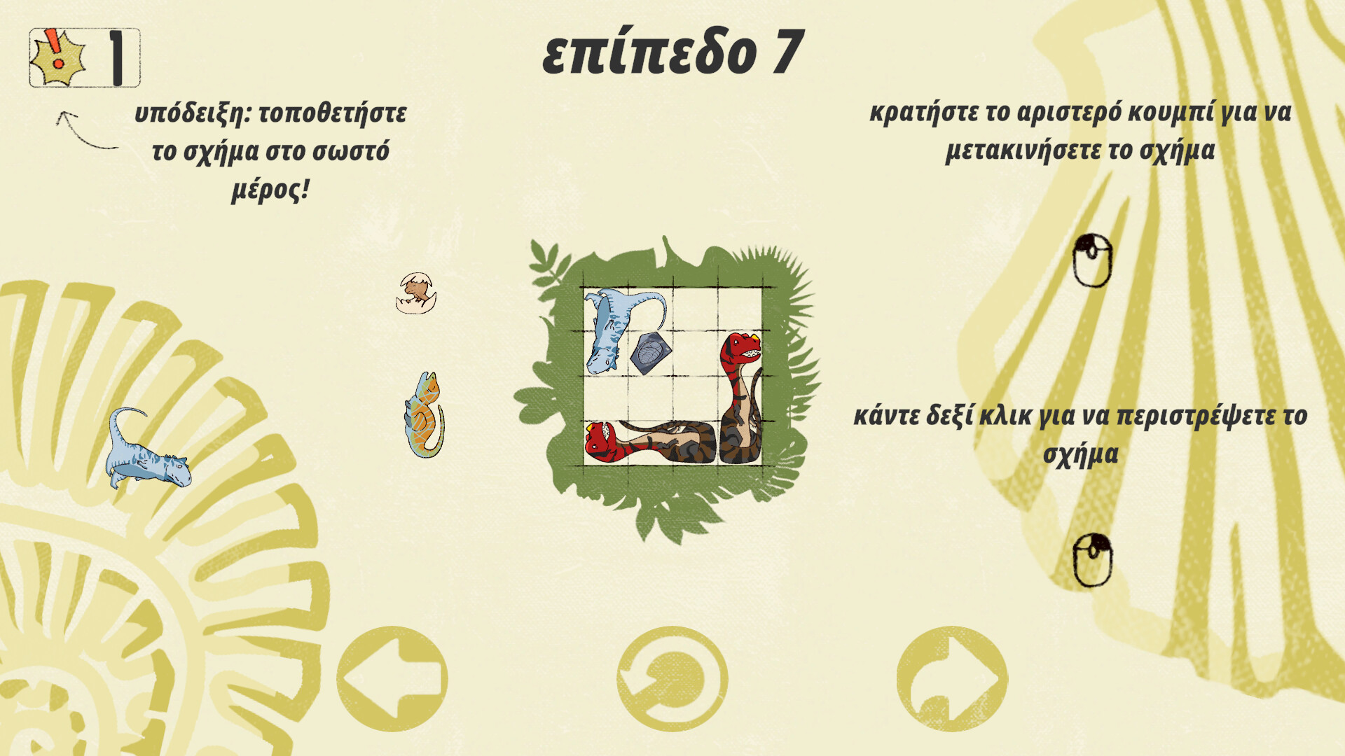 Ελέγχετε εύκολα τις φιγούρες των δεινοσαύρων χρησιμοποιώντας τα αριστερά και δεξιά κουμπιά του ποντικιού. Μετακινήστε και περιστρέψτε τους δεινοσαύρους για να τους τοποθετήσετε τέλεια στο πλέγμα.