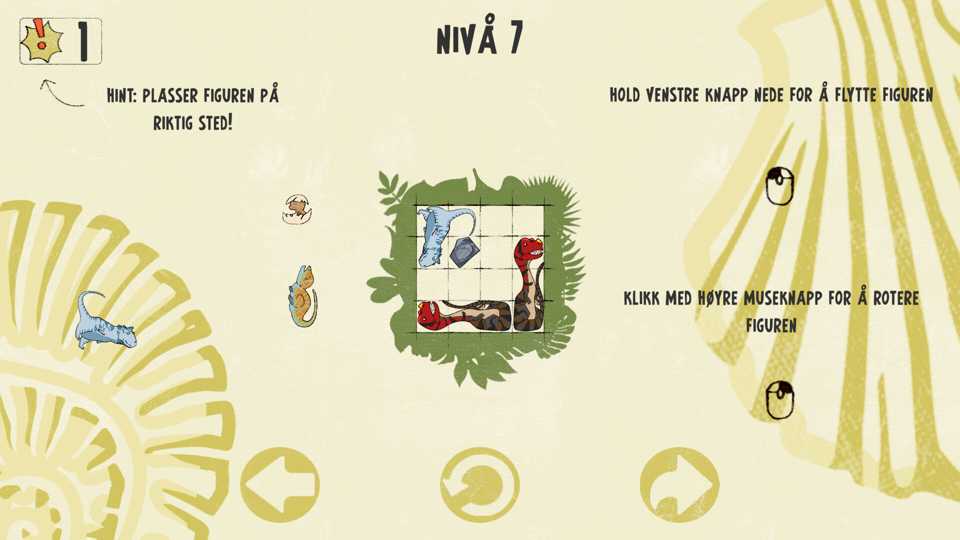 Kontroller dinosaurfigurene enkelt med venstre og høyre museknapp. Flytt og roter dinosaurene for å plassere dem perfekt på rutenettet.