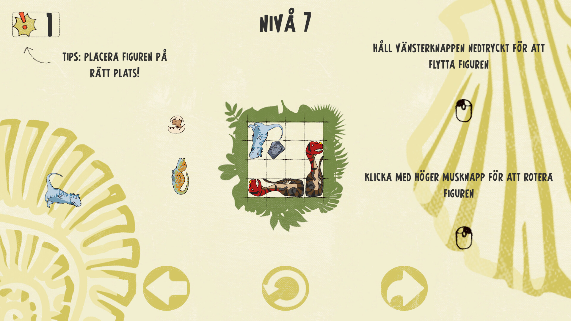 Kontrollera dinosauriefigurerna enkelt med vänster- och höger musknapp. Flytta och rotera dinosaurierna för att perfekt placera dem på brädet.