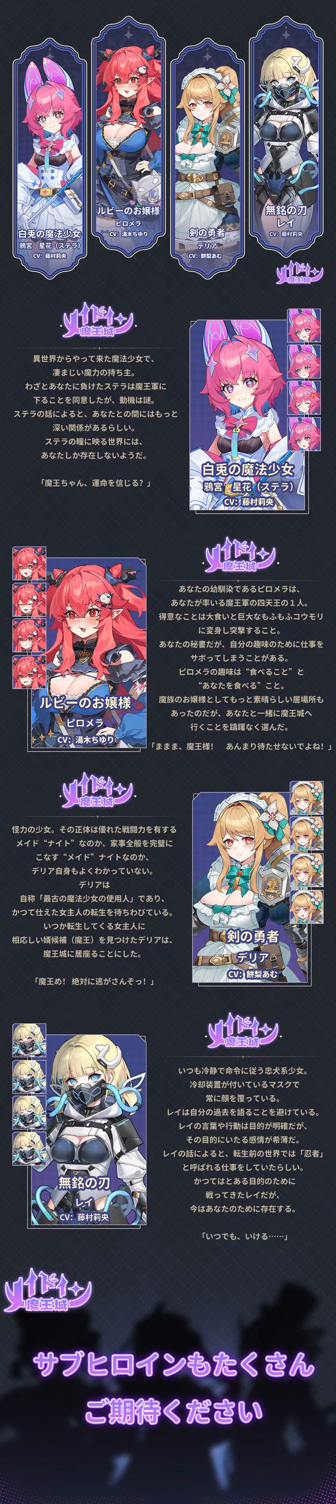 魔王城の主となり、侵入者を撃退せよ! 勇者や冒険者らを返り討ちにし、様々なトラップを組み合わせて魔王城で迎撃しよう! 捕らえた勇者は配下に加え、魔王軍を更に強化! 異世界から転生してきた勇者達と信頼を深め、物語の新しいページを開こう!