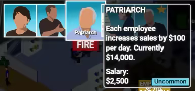 The game industry is a roguelike! Your family has just acquired dozens of new game studios, and YOU'RE the nepo baby in charge of running them. Fire people, grow your network, and do whatever it takes to satisfy "The Board" - and that means maximizing profit!