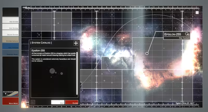 Create a galaxy with individual solar systems and provide each with rich detail, history, and visual styles with Stellar Navigator. Set up visually stunning dioramas of your solar systems and define each celestial body, moon, asteroid, or even black hole with information that makes each unique.