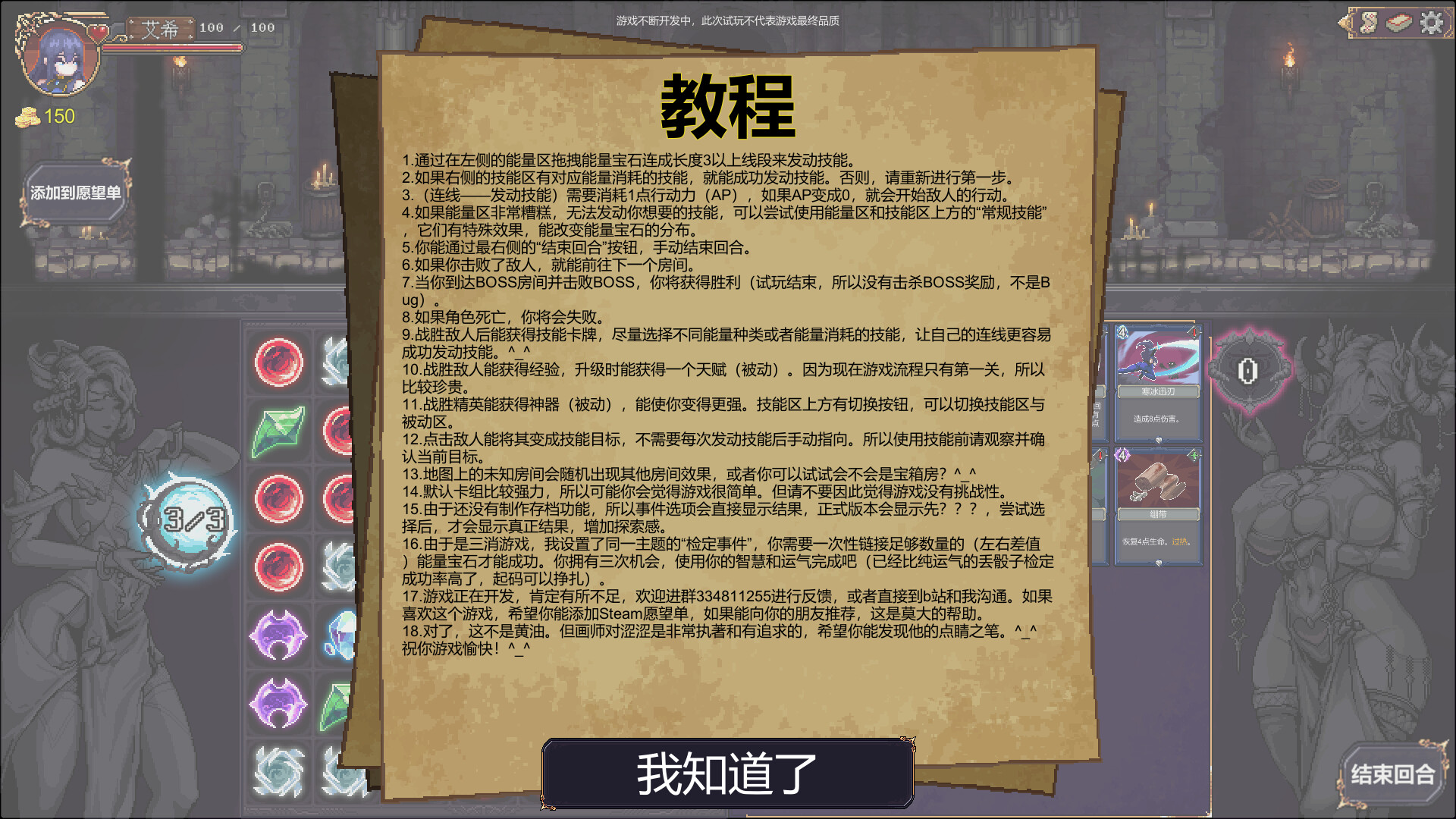 “当前版本的游戏提供了完整的肉鸽卡牌体验,拥有一个角色,40张技能卡牌,能构筑至少3种流派通关。”