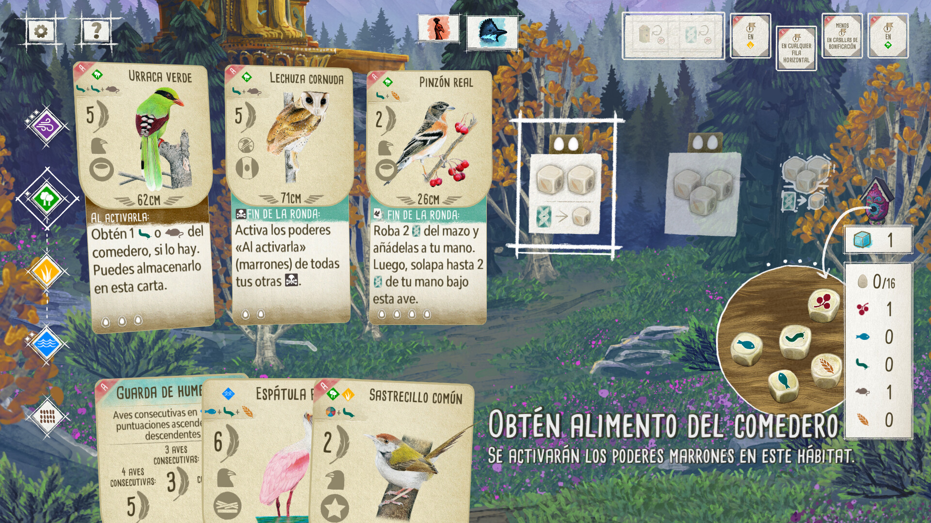 Wingspan: Expansión de Asia conserva todas las características que hay disponibles en la versión básica del juego. Juega tanto con tu bandada como con desconocidos en el modo multijugador multiplataforma, pon a prueba tus habilidades en los desafíos semanales y enfréntate al exigente Automa.