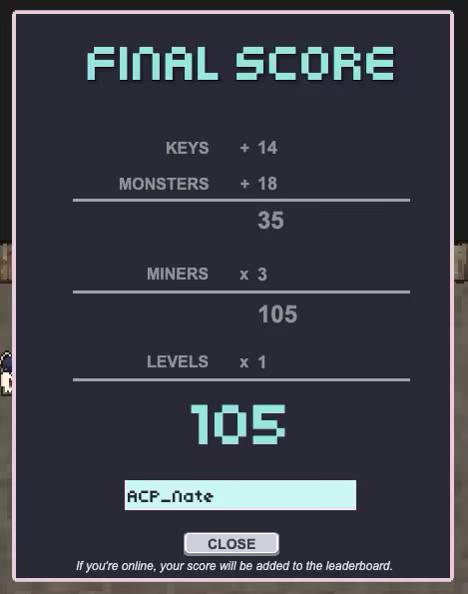 Save as many miners as possible and see how many levels you can compete. This will boost your score and help you climb the leaderboard! NOTE: online play records your score to the leaderboard, but offline play is supported.