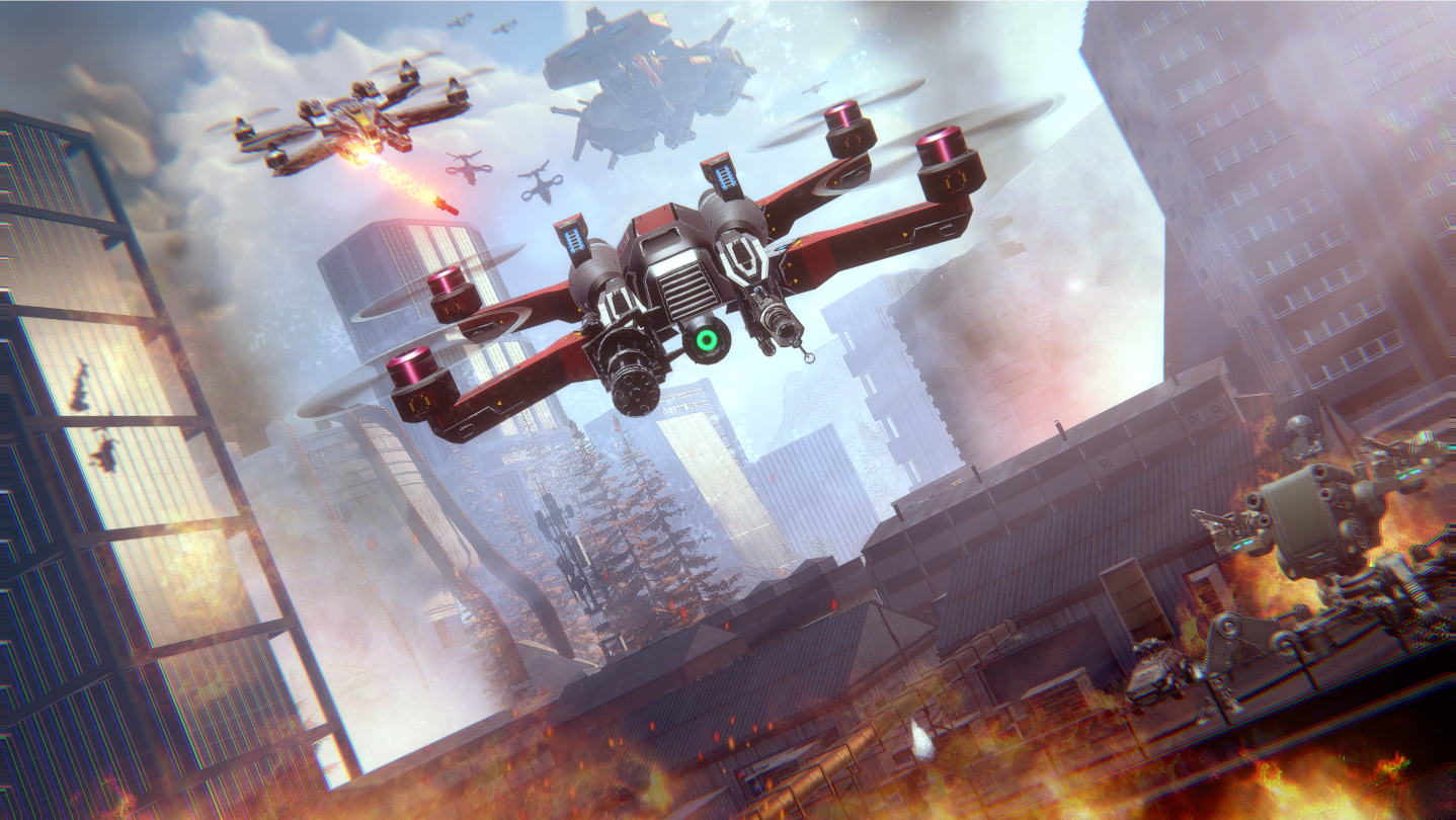 你的無人機就是你的畫布。從基礎機架開始,打造致命的戰爭機器軍械庫。混合武器,發現致命組合,在任務間調整你的配置。從快速攔截機到重型砲艇,打造完美的殺戮機器。