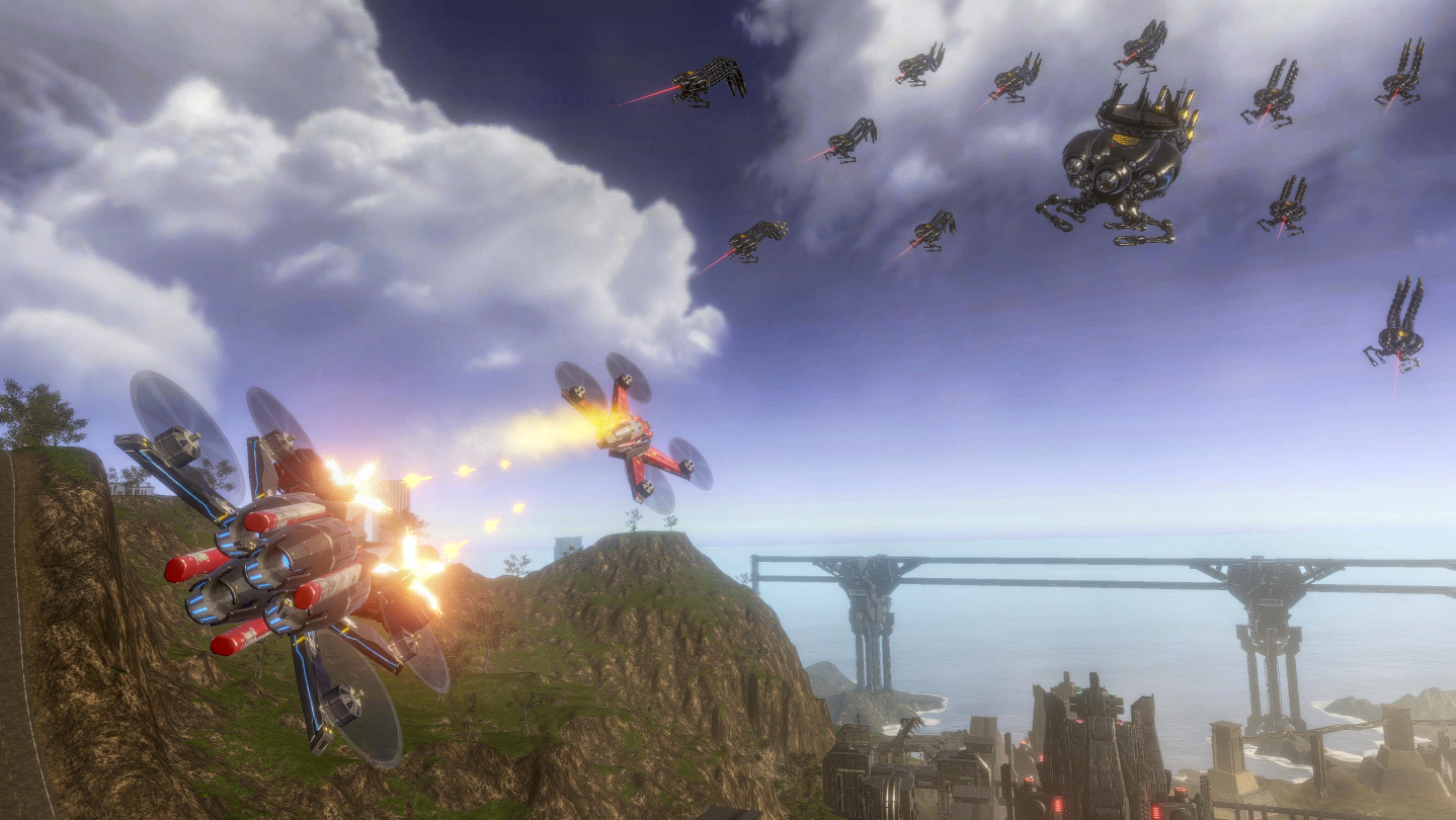 Setiap misi membawa ancaman baru, dari sistem pertahanan hingga skuadron elit. Bertarung melalui zona industri sempit dan zona perang terbuka. Jalan menuju bos akhir sulit tapi dengan kemampuan dan arsenal yang berkembang, kamu akan menaklukkan langit.
