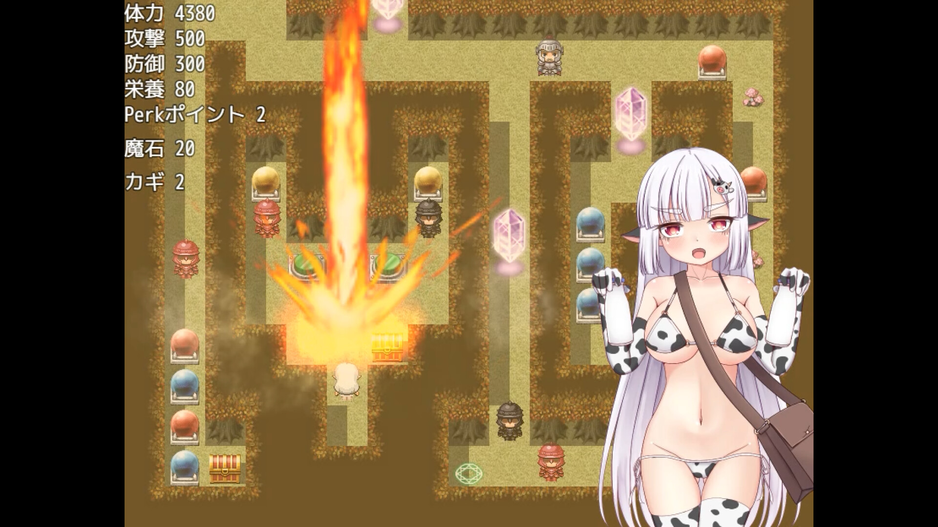 Your cow ""Bessie"" is delivering milk to the village of Lemingrad, but has to go through a scary area! Puzzle x Dungeon Crawler - This game is quick and fun with simple controls!