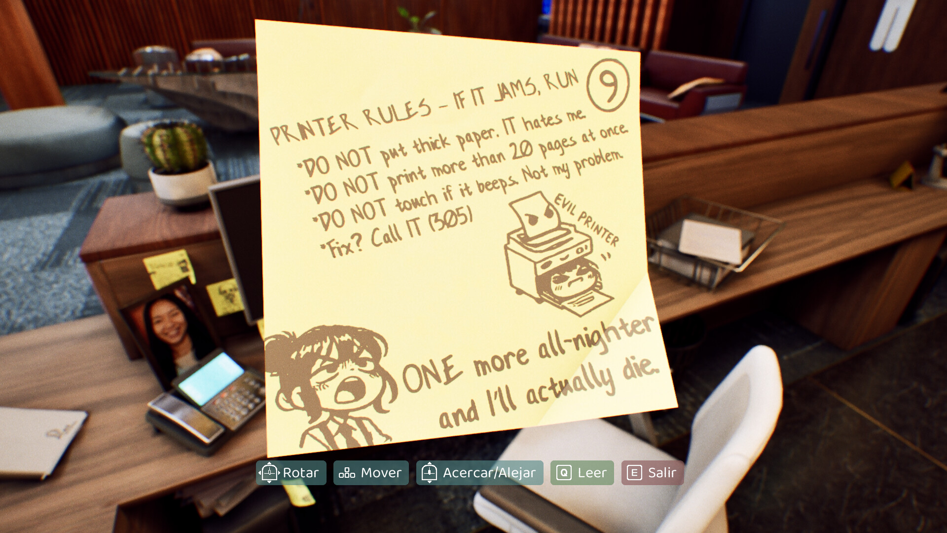 Conocerás a varios personajes de forma indirecta, reconstruyendo fragmentos de sus rutinas, conflictos y responsabilidades. Aunque no estén físicamente presentes, su presencia se siente en cada rincón. La historia se va desvelando a través de estas huellas, con el misterio central girando en torno a tu propia situación: