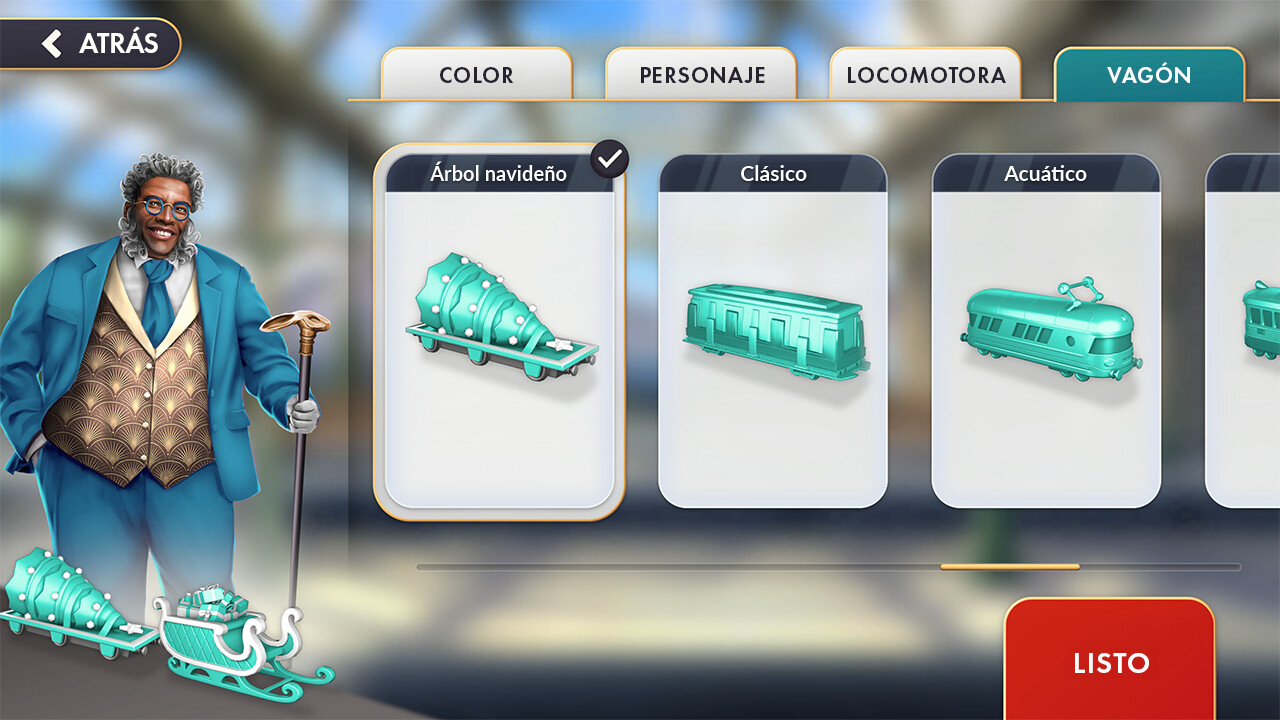 Recorre el mapa con las Ruedas de Papá Noel, prestadas especialmente por el hombrecito de mejillas rosadas para ti. Acopla el vagón Árbol Especial y reparte alegría de ciudad en ciudad mientras viajas por el mundo.