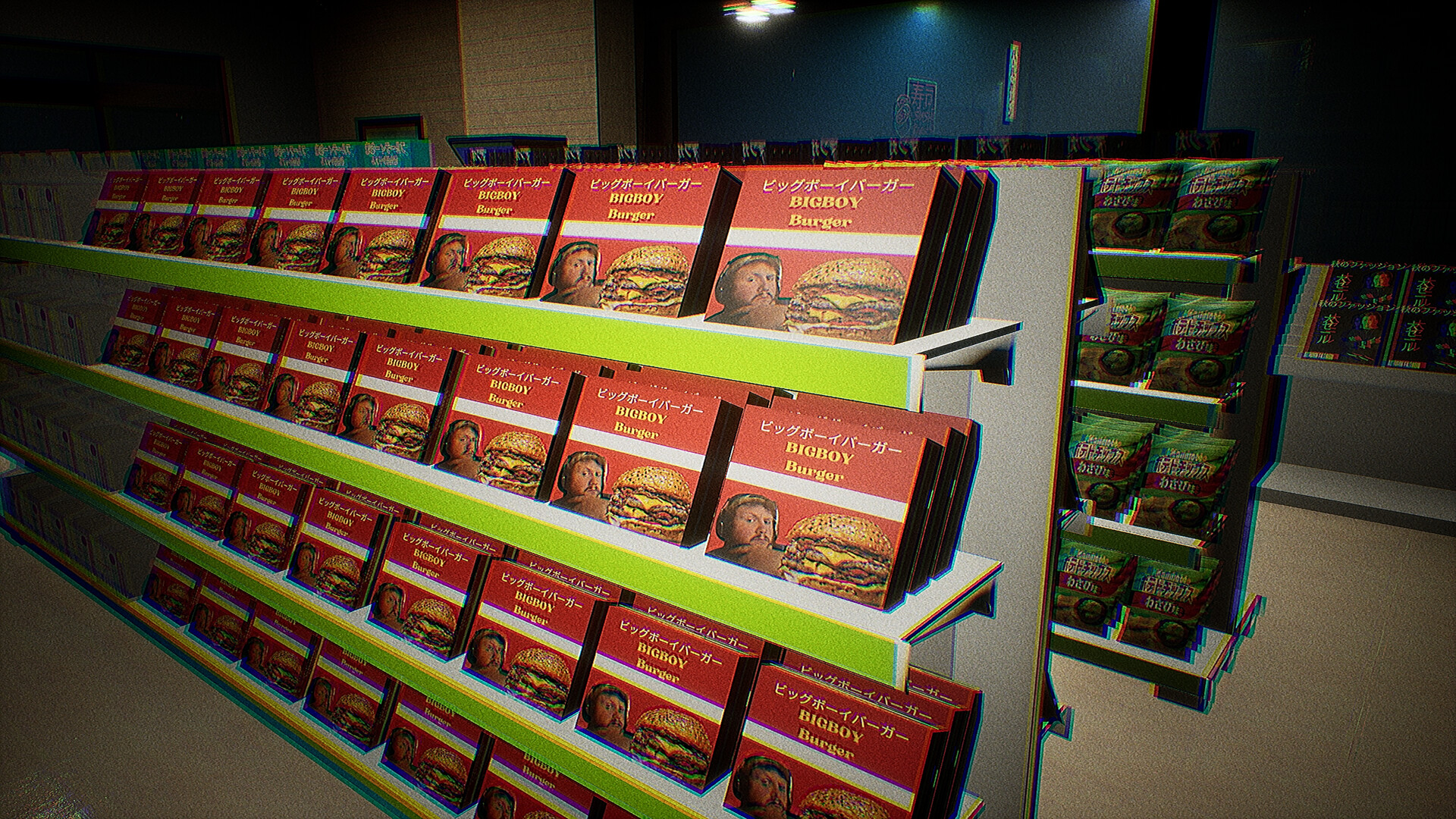 Theme: Unique VHS-style aesthetic. The game’s visuals feature grainy textures, color distortion, and subtle static effects that evoke the nostalgia of old-school horror films. Combined with dim lighting and flickering neon, the VHS style enhances the unsettling ambiance. (VHS can be turned off in settings)