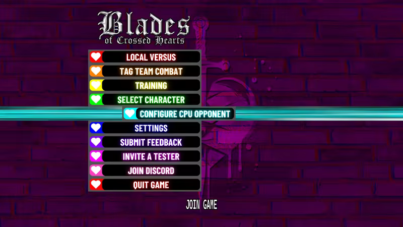 Blades of Crossed Hearts is an angsty anime character action fighting game taking inspiration from Marvel vs Capcom and the Devil May Cry series.