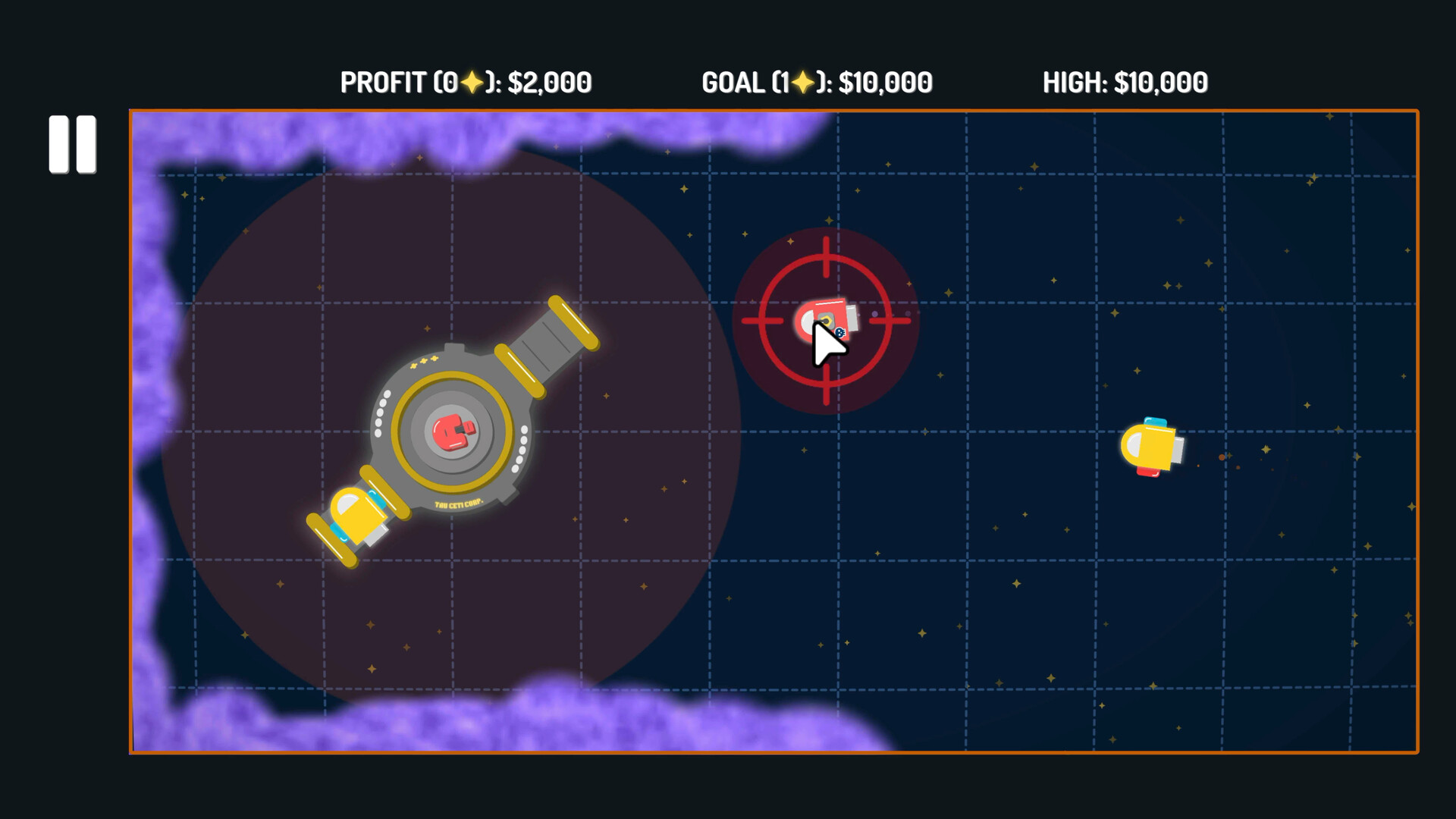 A "Space Traffic Control" game where you control cargo ships by clicking and dragging them, attempting to guide them to docks where they can unload. Be careful, if things get too chaotic and ships collide or run into other obstacles, such as pirates or asteroids, then you lose.