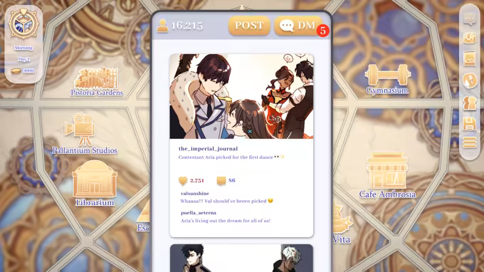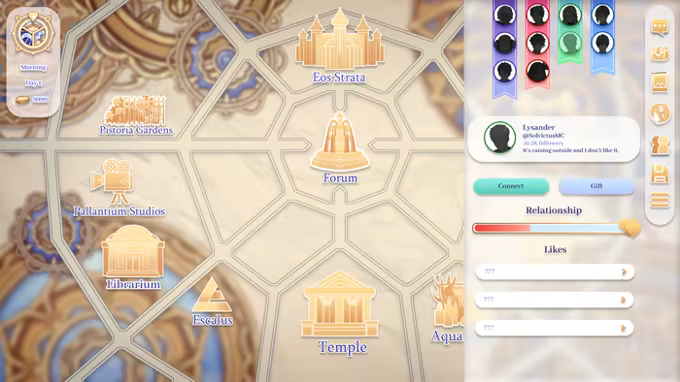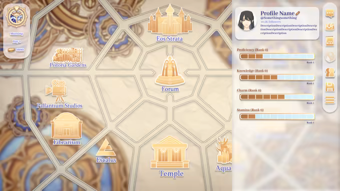 Unlock story content that can be played on your own time - no real time based management system! Choose how to spend your days exploring the map of Strata and discover your favorite character's favorite hangout places and times.