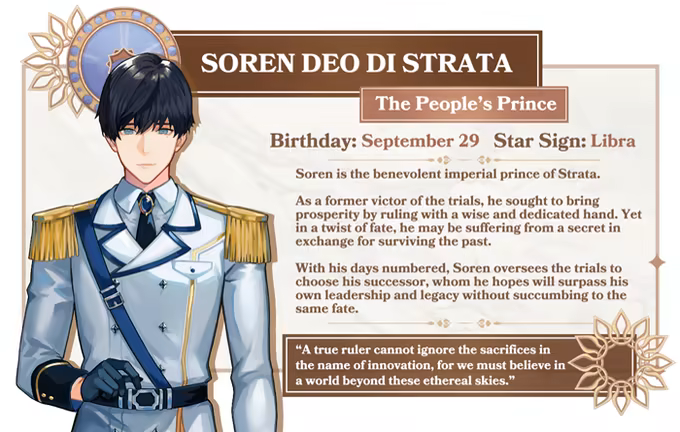 As per the empire’s decree, the candidates must undergo three perilous trials to prove their wits and merits to ascend the throne should they survive. Competitors hail from all parts of the empire with aspirations of their own.
