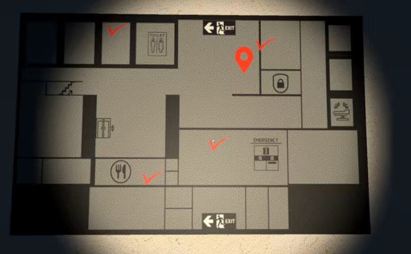 A floor plan has been added to help players identify their current location, the location of clue items, and the layout of the first floor of the hospital.