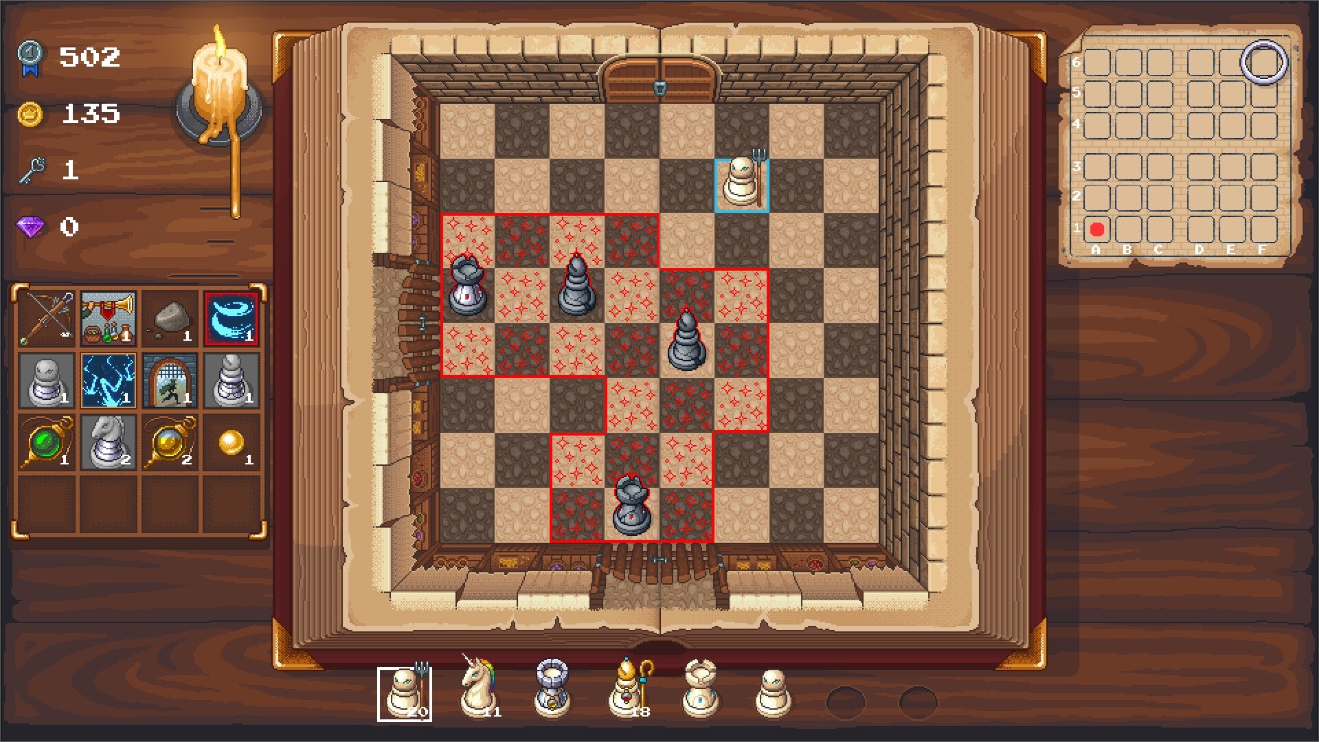 A roguelite adventure in the chess kingdom – roam the land as a shapeshifter, collect items & loot, trade with merchants, defeat powerful bosses and find the white queen to break the curse of the black wizard!