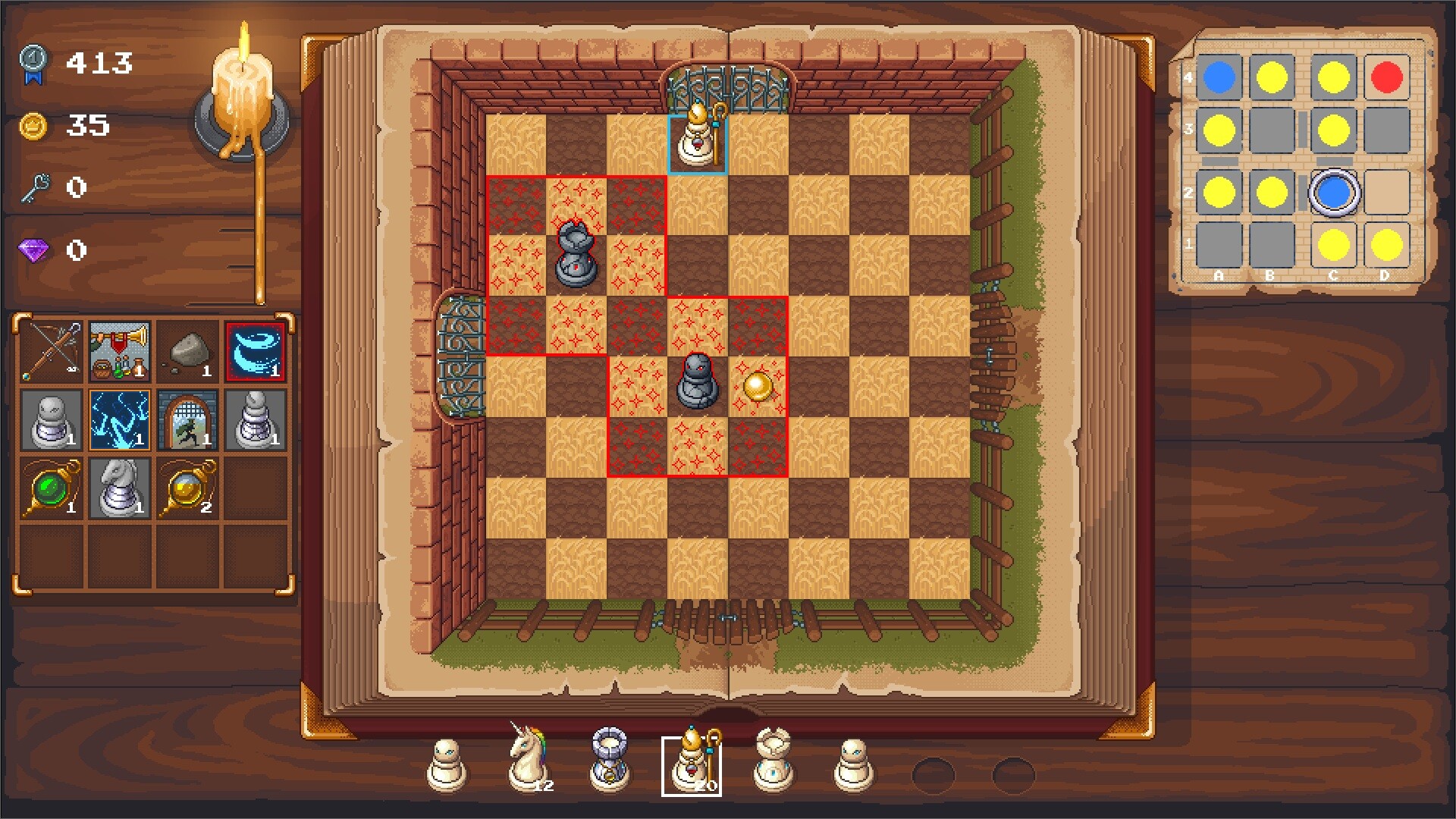 A roguelite adventure in the chess kingdom – roam the land as a shapeshifter, collect items & loot, trade with merchants, defeat powerful bosses and find the white queen to break the curse of the black wizard!