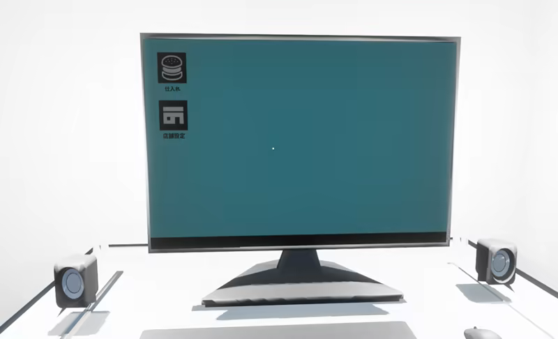 The in-store computer handles various tasks, such as purchasing ingredients, changing the delivery bike's license plate, and changing the color of the store's floor.