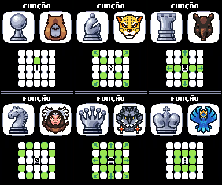 Você é um indígena da região e estará encarregado de posicionar os animais estrategicamente usando o terreno a disposição e os coletáveis nas fases para conseguir enfim expulsar esses invasores nessa reimaginação do clássico xadrez.