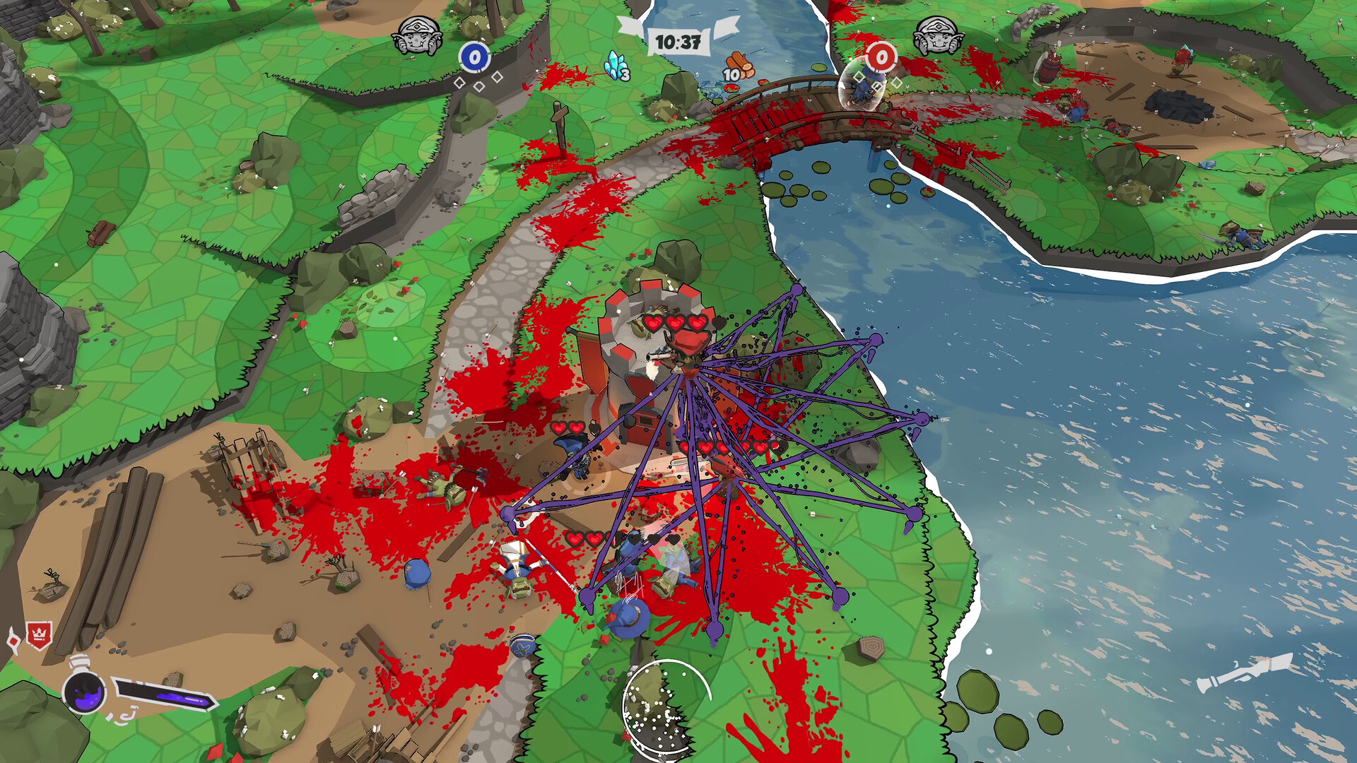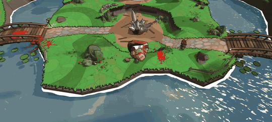 This game is cartoony and fun in style, but it contains a lot of (goblin) blood! Whenever a goblin takes damage, their cartoony blood stains the ground for a period of time before fading. There is a setting that allows you to change the color of the goblin blood.