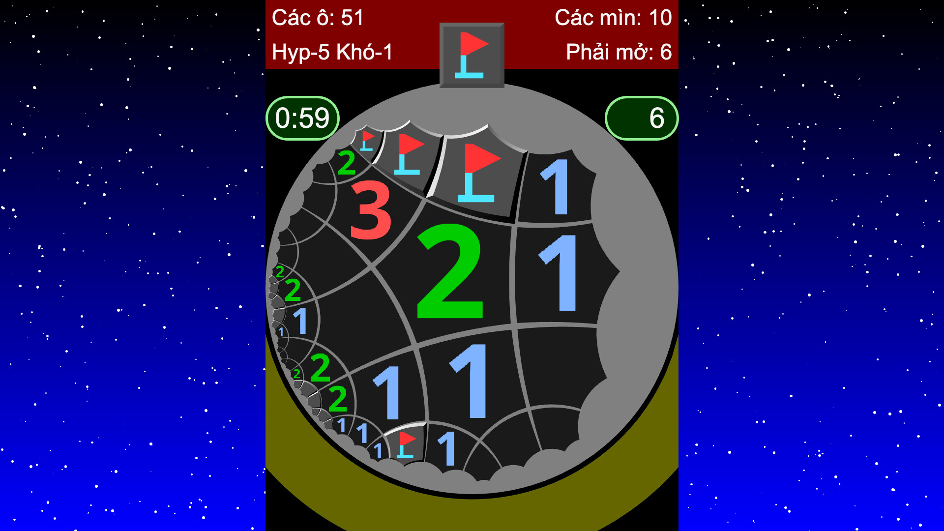 Đây là trò chơi Minesweeper với hình học phi Euclid, có thể giải quyết logic mà không cần đoán mò.