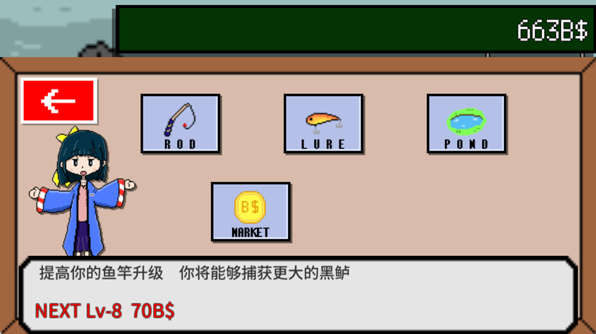 一旦你存了一些钱,你就可以升级你的工具。你将能够捕获更大、更多数量的黑鲈。