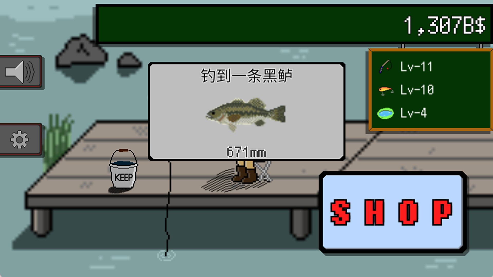 一旦你存了一些钱,你就可以升级你的工具。你将能够捕获更大、更多数量的黑鲈。
